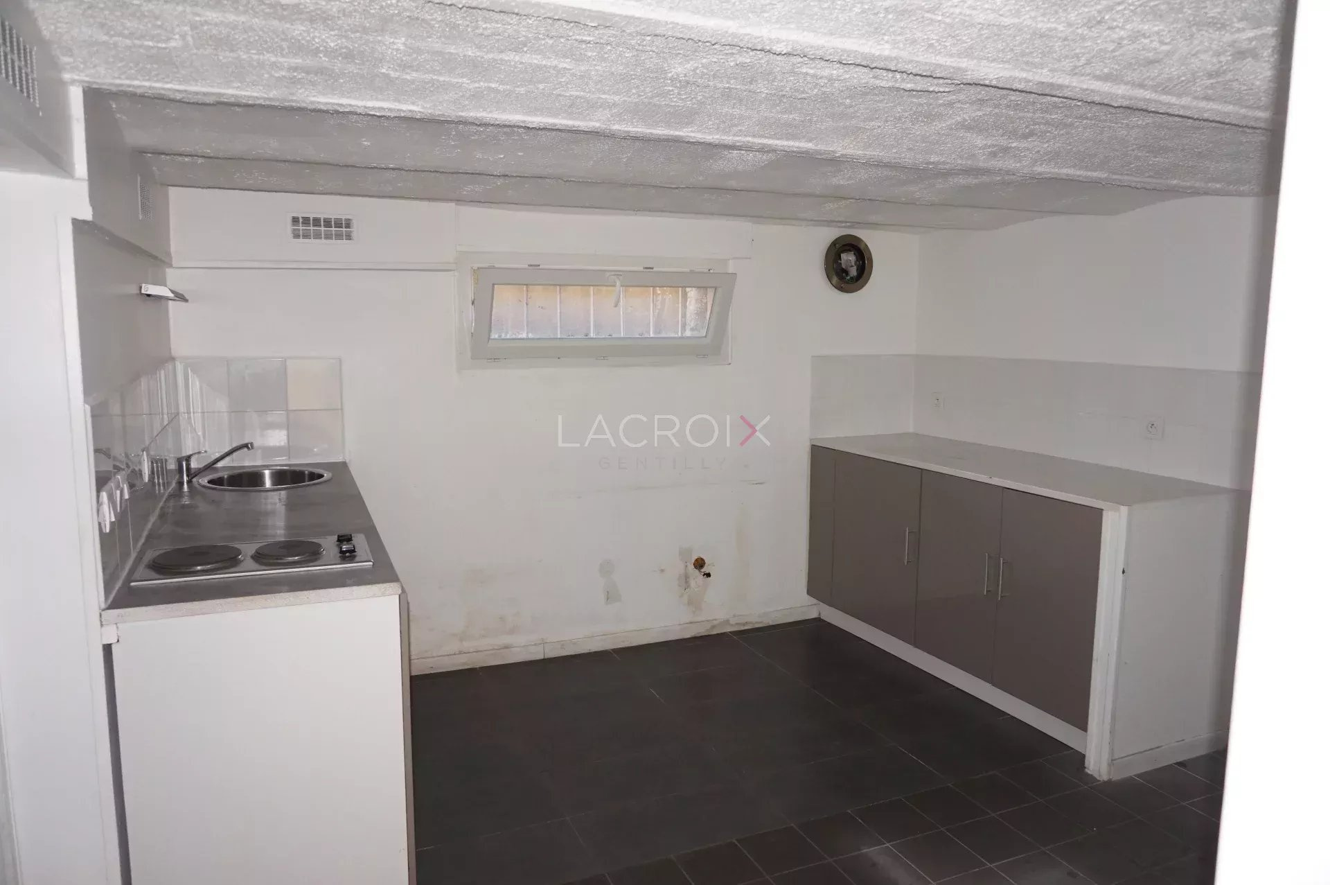 Cachan, à 3 mn du RER B Bagneux, dans une petite rue pavillonnaire calme, en RDC d'un immeuble d'habitation, local d'environ 28 m² de plain pied avec WC, vendu avec une annexe en sous-sol semi enterrée de 29m². Le tout en bon état. Affectation atelier, bureau et cave. Vendu libre.
